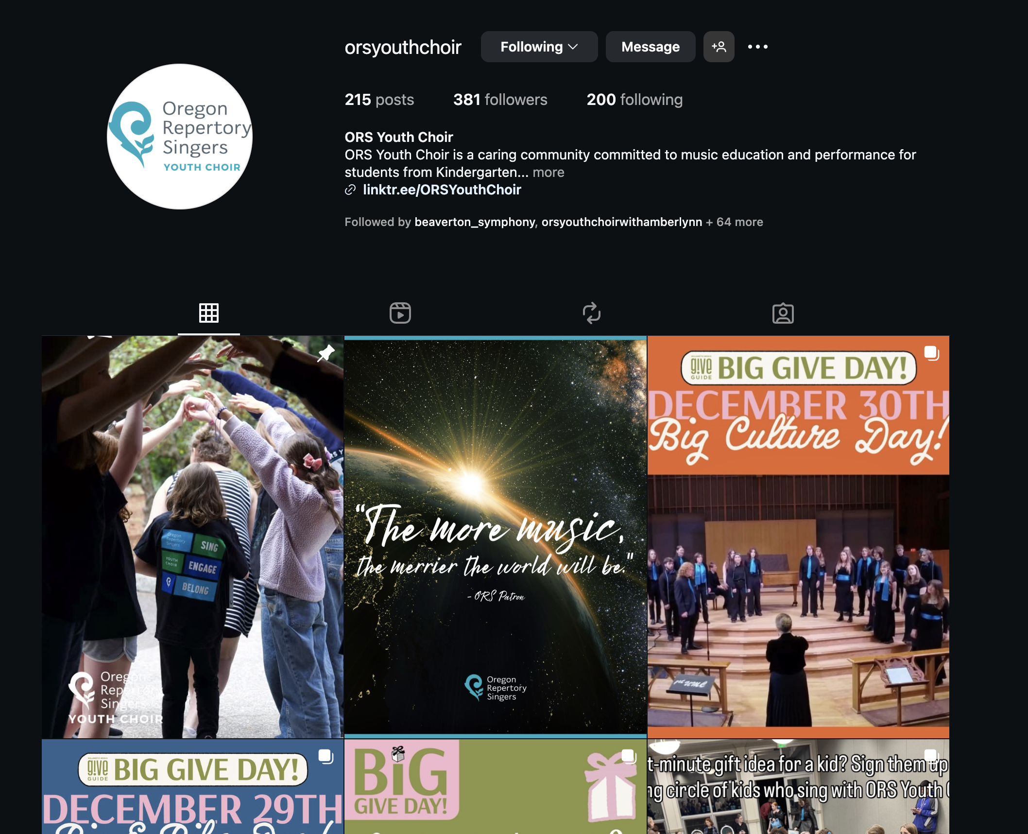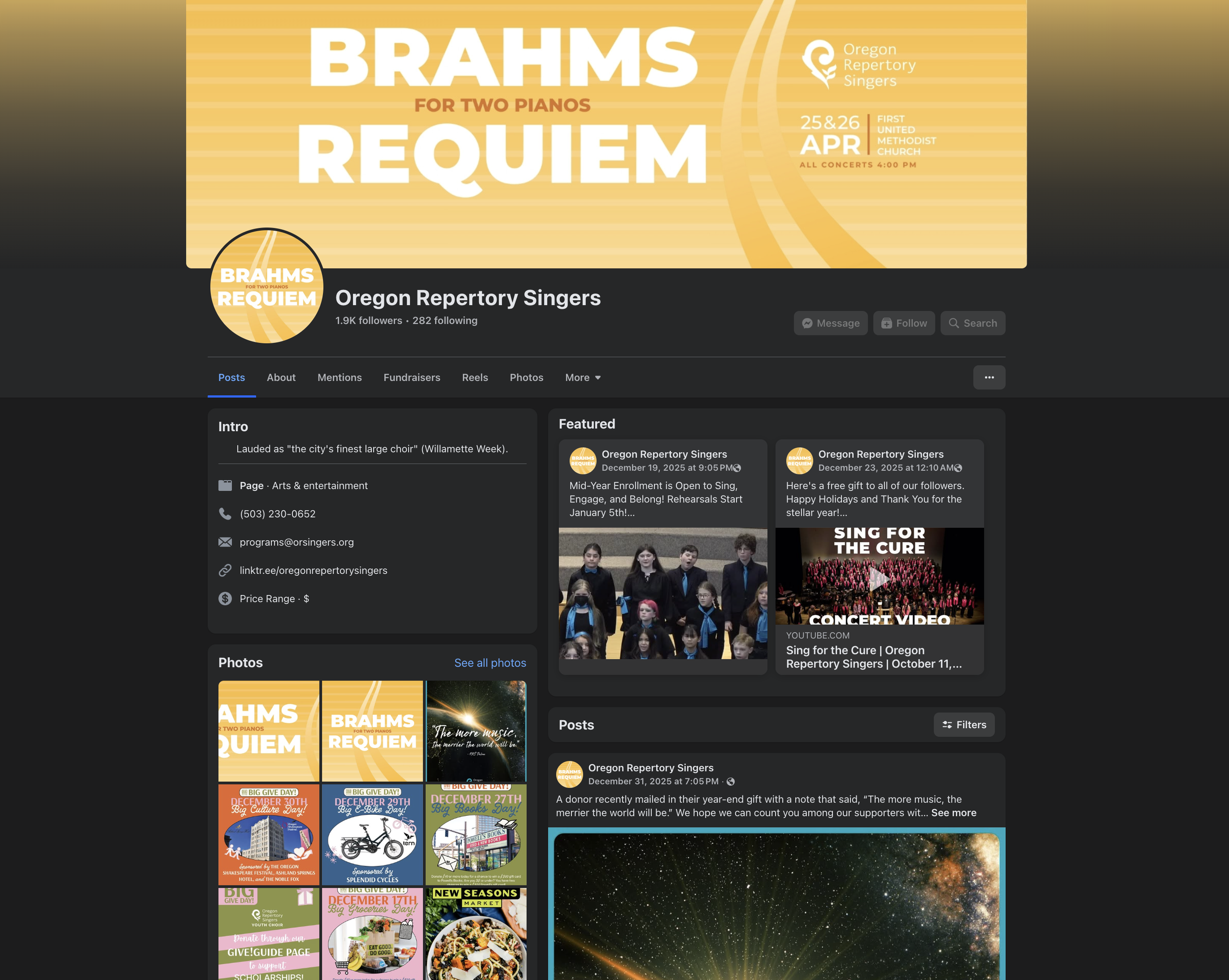 And 147 new followers on the Youth Choir profile
